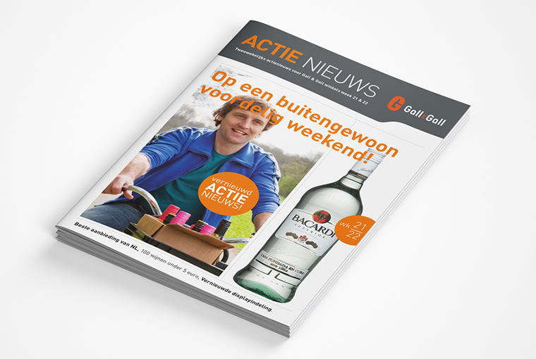 Actienieuws werd door zijn te zakelijke uitstraling voornamelijk praktisch gebruikt. De doelstelling was om bekendheid en/of kennis van acties en veranderingen in de winkels te communiceren en het enthousiasmeren van de medewerkers voor de komende acties. Het eindresultaat is een visuele aantrekkelijke en overzichtelijke ‘infokrant’ waarbij het enthousiasmeren van de Gall & Gall medewerkers voorop staat.